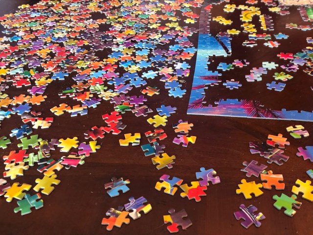 My house is an exercise in simplicity. Neighbors put white lights on the trees and shrubs out front? I string colored lights through the trees out front. And thats where I stop. Nothing on the shrubs lining the front of the house, no spotlight on the wreath on the front door. Sure there are candles in the windows and the white lights on the Christmas tree peak through one of the living room windows. I’m doing my part without trying too hard. The neighbors must shake their heads as they drive by.