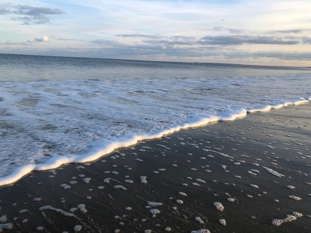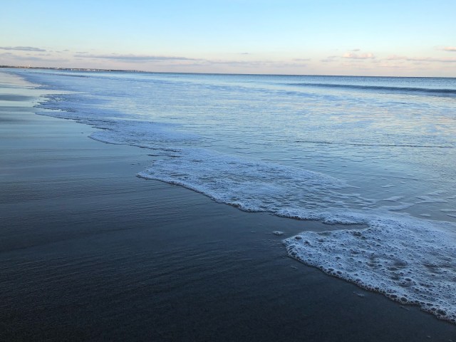 Winter beach walks are different in a few ways.  First, and most obviously, the water and air are colder, so you aren’t barefoot unless you’re hardcore.  I don’t shy away from cold water swims, but I wasn’t going to walk barefoot today.  Second, and almost as obviously, there aren’t all that many people keeping you company.  This solitude, combined with the sound of the surf, promotes quiet reflection.  And another difference in winter walks on the beach plenty of free parking.  I have a real problem with paying to park for a walk on the beach.