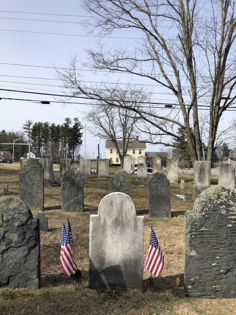 Yesterday afternoon I was in Merrimack, New Hampshire between meetings and stopped at a coffee shop for a few minutes. I passed the Common Man Restaurant, which having dined there I’d remembered as one of the oldest houses in the area. I thought I’d like to go back to the Common Man to re-acquaint myself with the house. Glancing across the street, I saw an old graveyard dated from 1742 with a tall monument with a red, white and blue wreath on it. I almost crossed the busy street to look at it but the timing wasn’t good. These are places I generally gravitate to and I made a mental note to come back to this spot sometime to get to know those who came before us a bit better.
