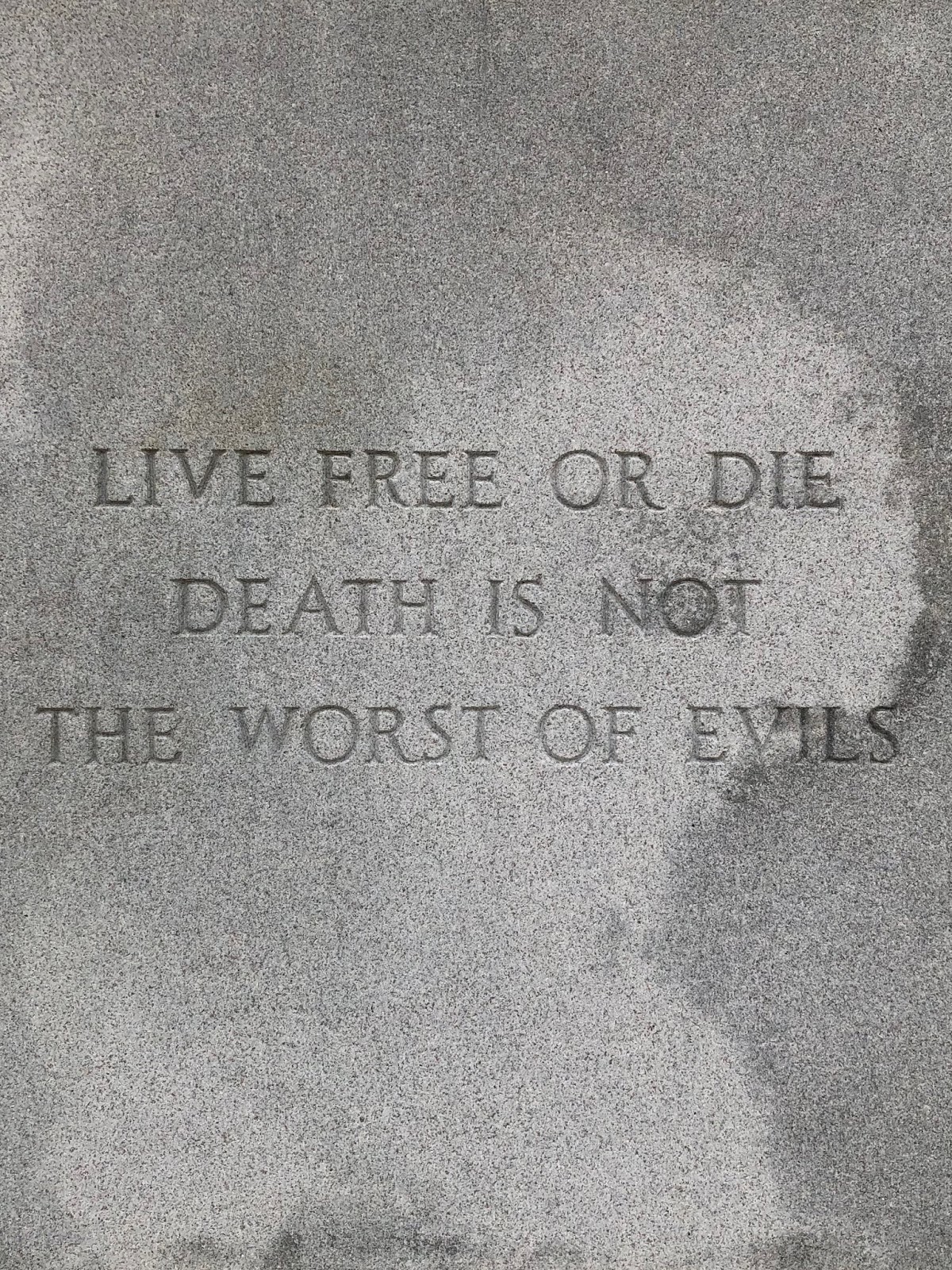 The expression is more meaningful if you reflect on the entire phrase written by General John Stark to commemorate the Revolutionary War’s Battle of Bennington; “Live free or die: Death is not the worst of evils.” John Stark is a fascinating, bad-ass kind of guy who I’m going to write about more in a separate post tomorrow, but suffice it to say, he lived the words.