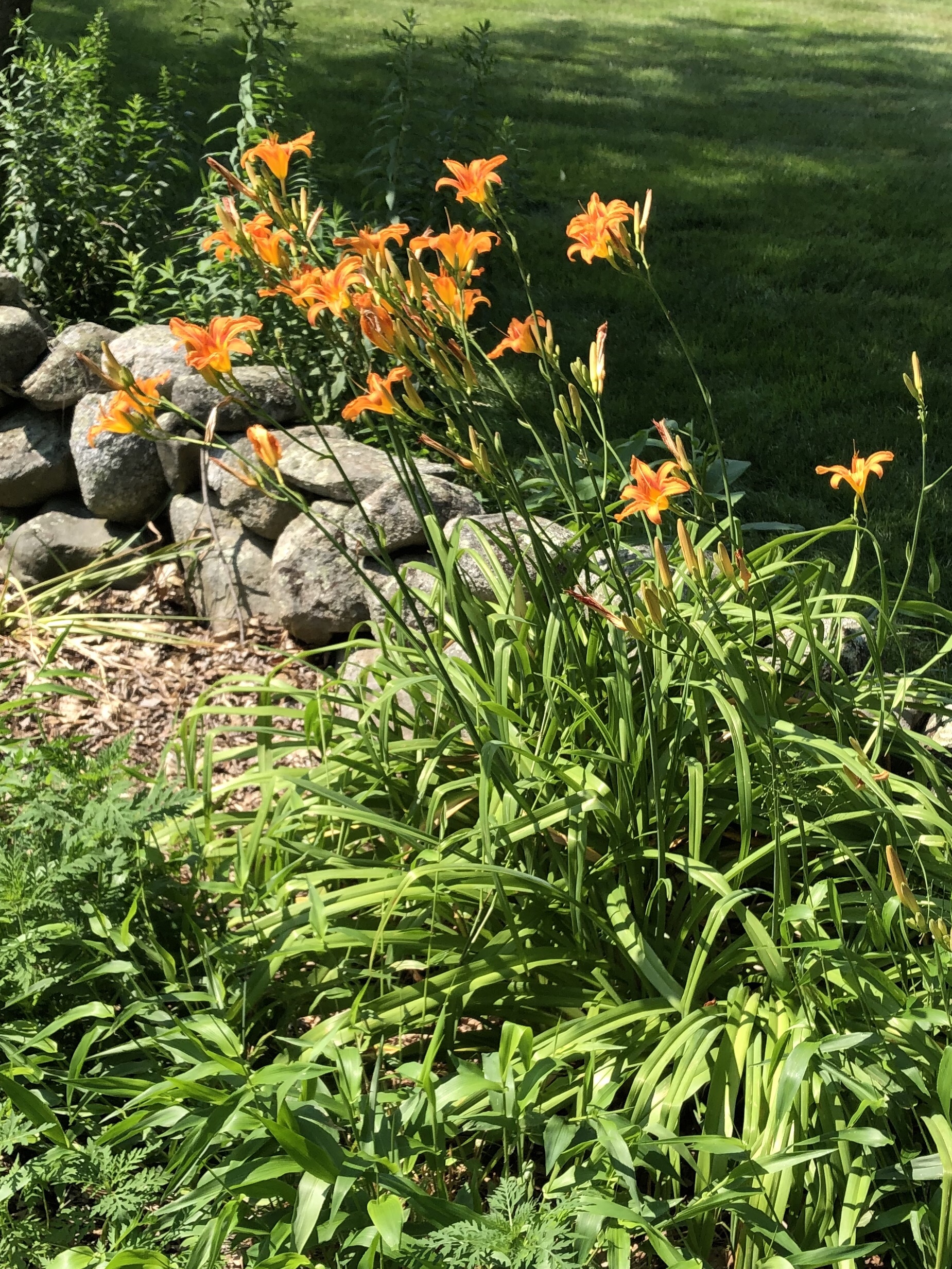 This is the time of year when the orange time machines announce they’re back. Along old stone walls, foundations of farmhouses and in places random today but logical once upon a time. The tiger lilies are back.