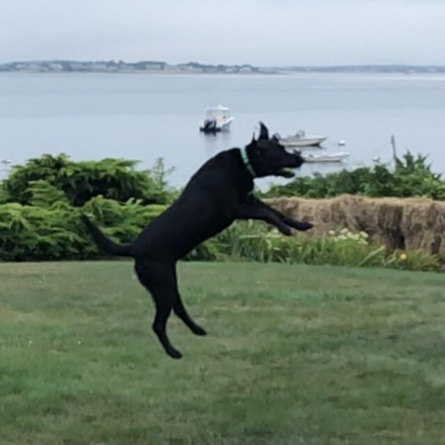 This is the big weekend on the Cape, with the Falmouth Road Race pulling in thousands of runners. It’s big in Pocasset too this weekend, bursting at the seams. The house was full of dogs this morning. And people. But the dogs steal the show as usual.