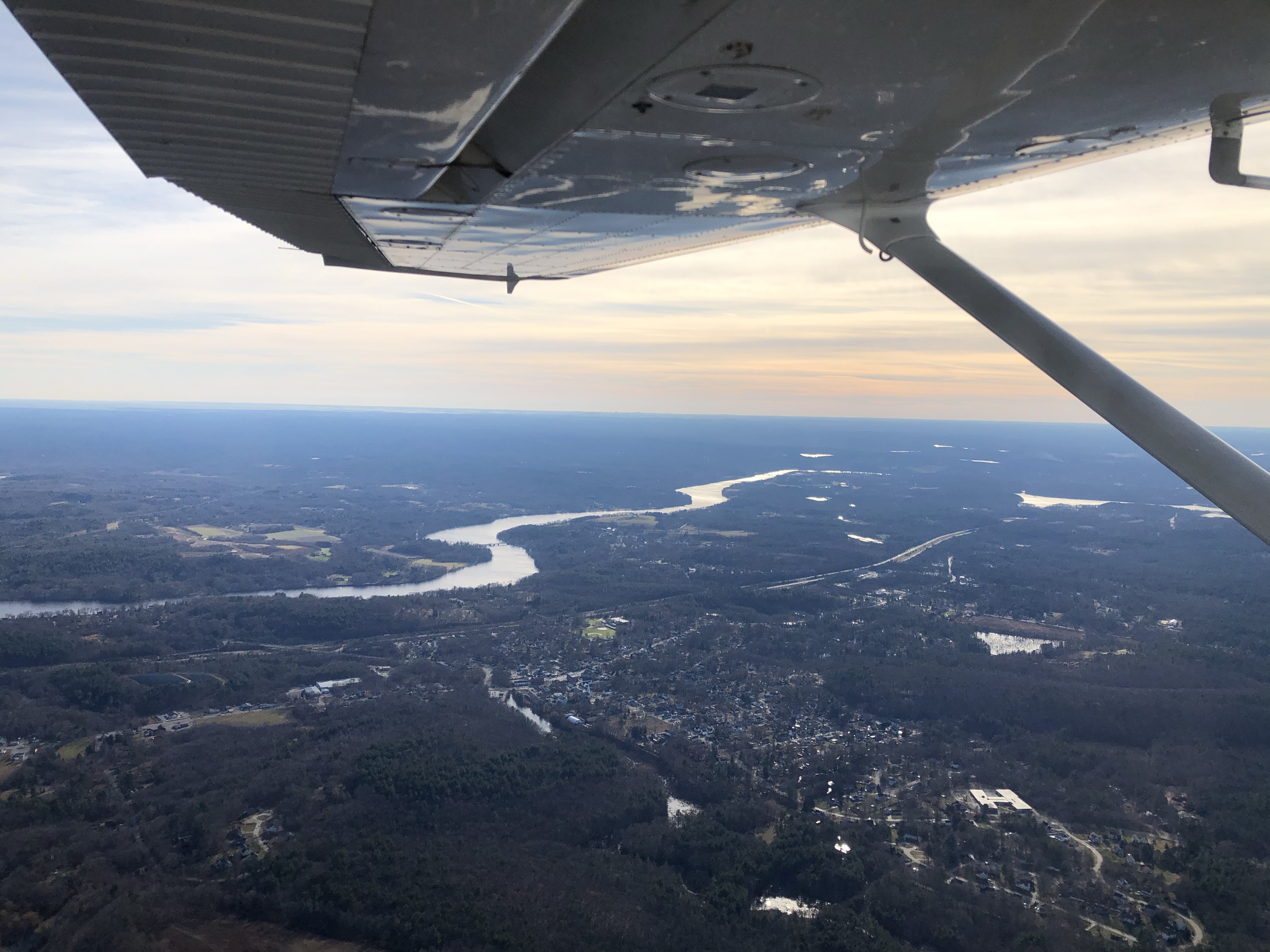 Commercial flying offers stunning views from a 12″ oval window. I’ve sat in awe at views from 30,000 feet over New Brunswick and the landing over Boston Harbor at Logan Airport. I always try for a window seat on a red eye just so I can catch the sunrise. Flying in a Cessna is different. First, you feel much more connected to the mechanics of flying, even in the back seat. Everything is right there in front of you with instruments, controls and communication with the towers all part of your experience. And that experience! The views are close to 360 degrees, you’re flying over terrain you’ve known from the ground up, seeing it literally from a bird’s eye view at 2000-3500 feet max, and going a lot slower so can savor the view more.