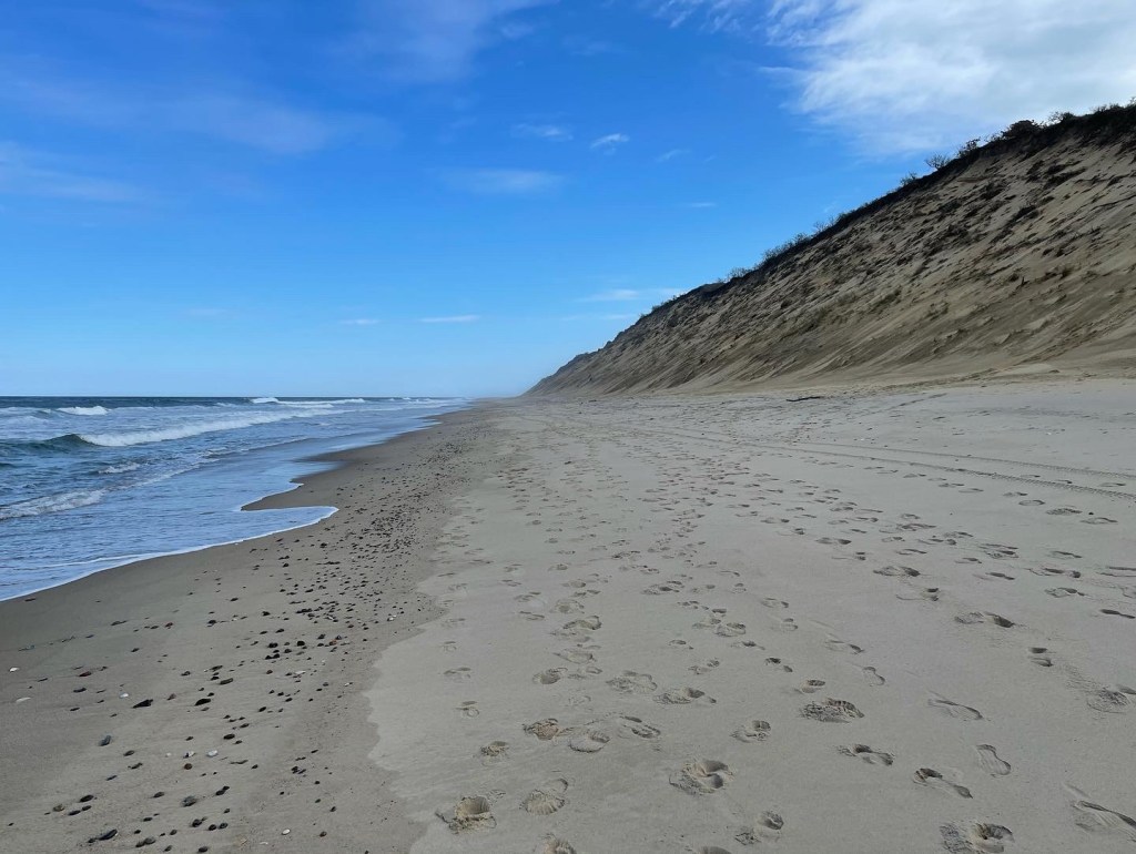 In April you don’t see many seals bobbing in the surf on Cape Cod. So the sharks move on to other hunting grounds and leave this stretch of wild ocean to the occasional surfer and the beach walkers. A walk on the Cape Cod National Seashore can happen just about anywhere with an access path down the 100-foot dunes. Sand is dangerous stuff that can bury a reckless trespasser in no time at all. Sticking to the access paths preserves the dunes and just might preserve you too. The access paths themselves inform in their soft give. This is not a place for the meek. If you can’t handle the access path don’t walk this beach.