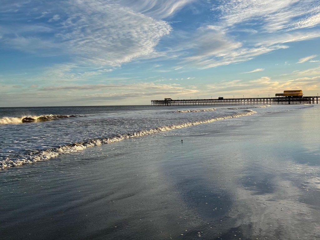 I’ve written a bit about Oceanside recently. Myrtle Beach is new for me, and it seems like paradise for year-round golfers, with over 100 courses nearby. I’m not much of a golfer, but I appreciate a long, walkable beach in the offseason, and they surely have that in Myrtle Beach. The piers connect two places for me, if only as common ground. Latitude isn’t that far off, Myrtle Beach is at 33.6891° N, while Oceanside is at 33.1959° N. The gulf currents are of course opposite between the coasts, with warmer water reaching up to greet Apache Pier, while Oceanside Pier has cooler waters coming down from Alaska.