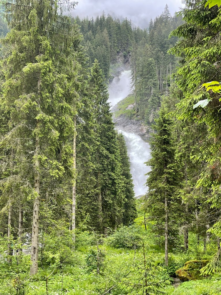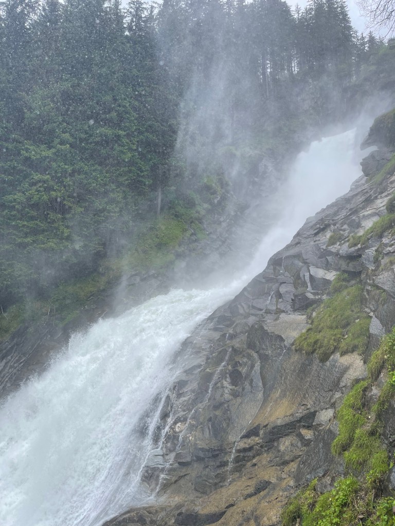 It’s quite easy for your spirit to fill when you feel the spray swirl around you and hear the roar of frigid whitewater meeting stubborn rock. Maybe this is why we seek out big waterfalls, but small plunges offer their own lift. A giant like Krimml amplifies that spirit lift with awe. A visit locks in new memories.