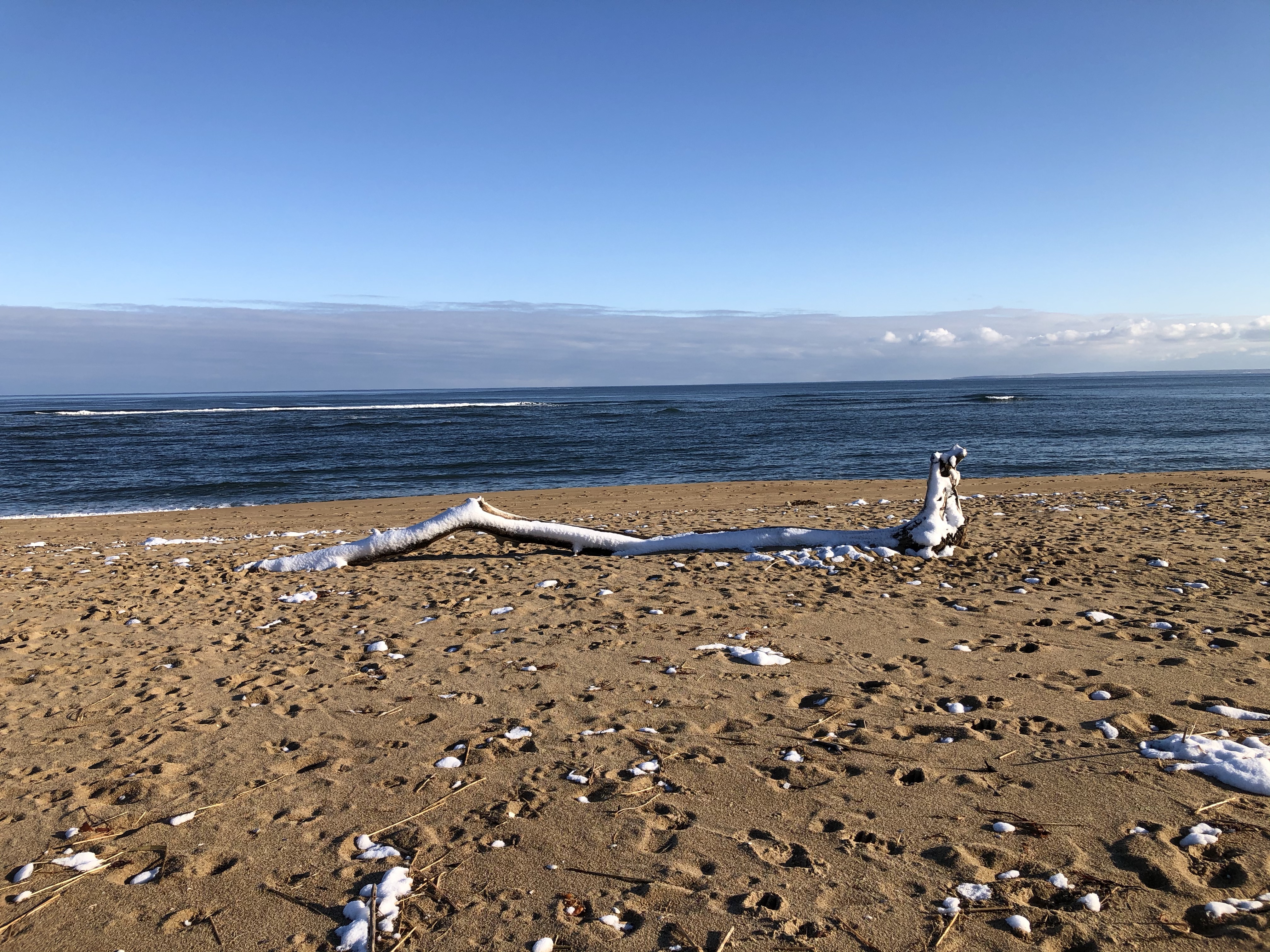 The math adds up, mostly. When you walk 4.25 miles in one direction on a rail trail, you should get the same number coming back in the other direction. Except that I took a couple of detours on the walk north, exploring side paths that I’ve previously marched right by. This wasn’t a timed walk, it was all about being outside, alone with the ice. Well, mostly alone; there were the seven other people I saw, shufflers every one. The iciness of the rail trail made it unsafe for walking without micro spikes strapped into your hiking shoes, but crunchy ease with them.