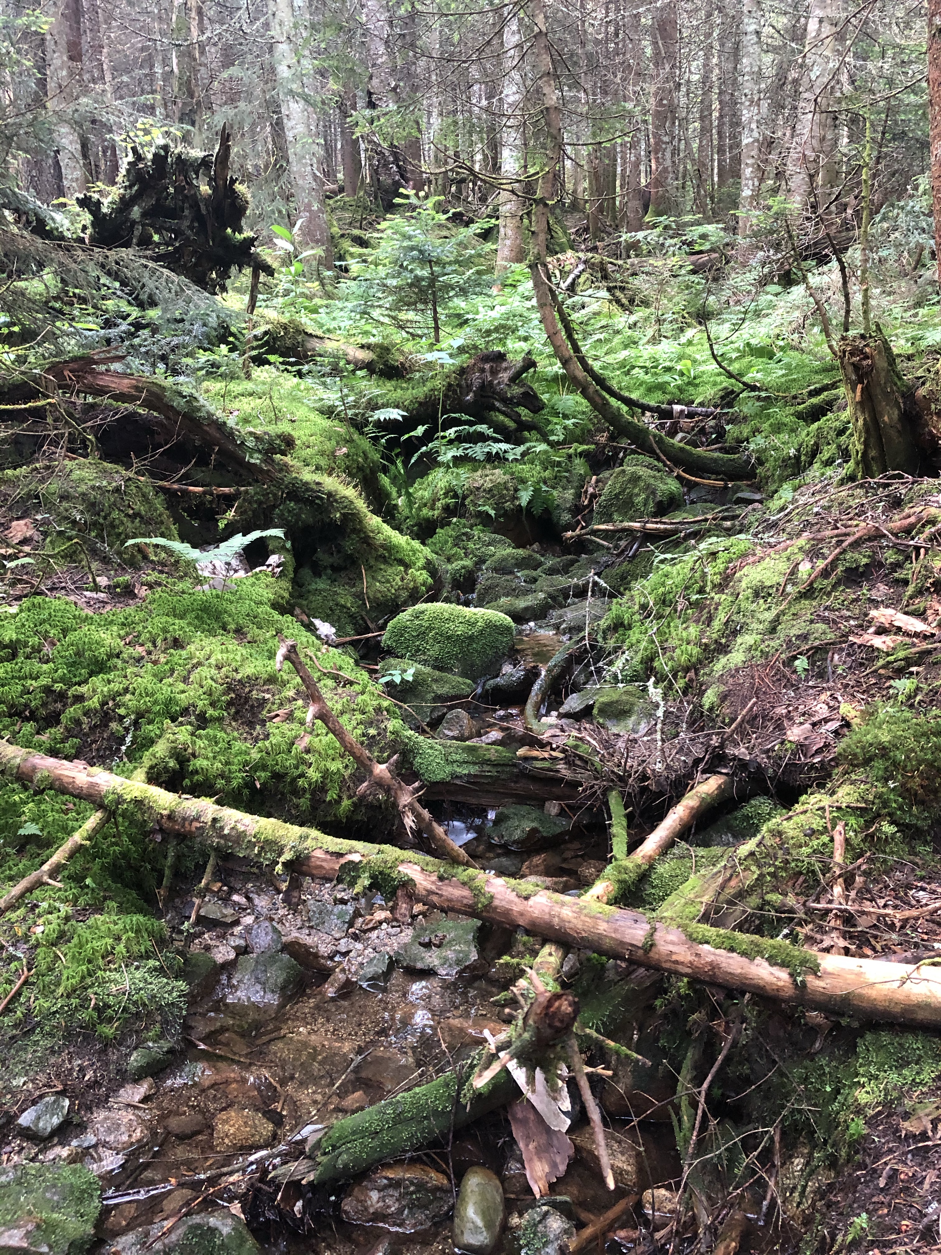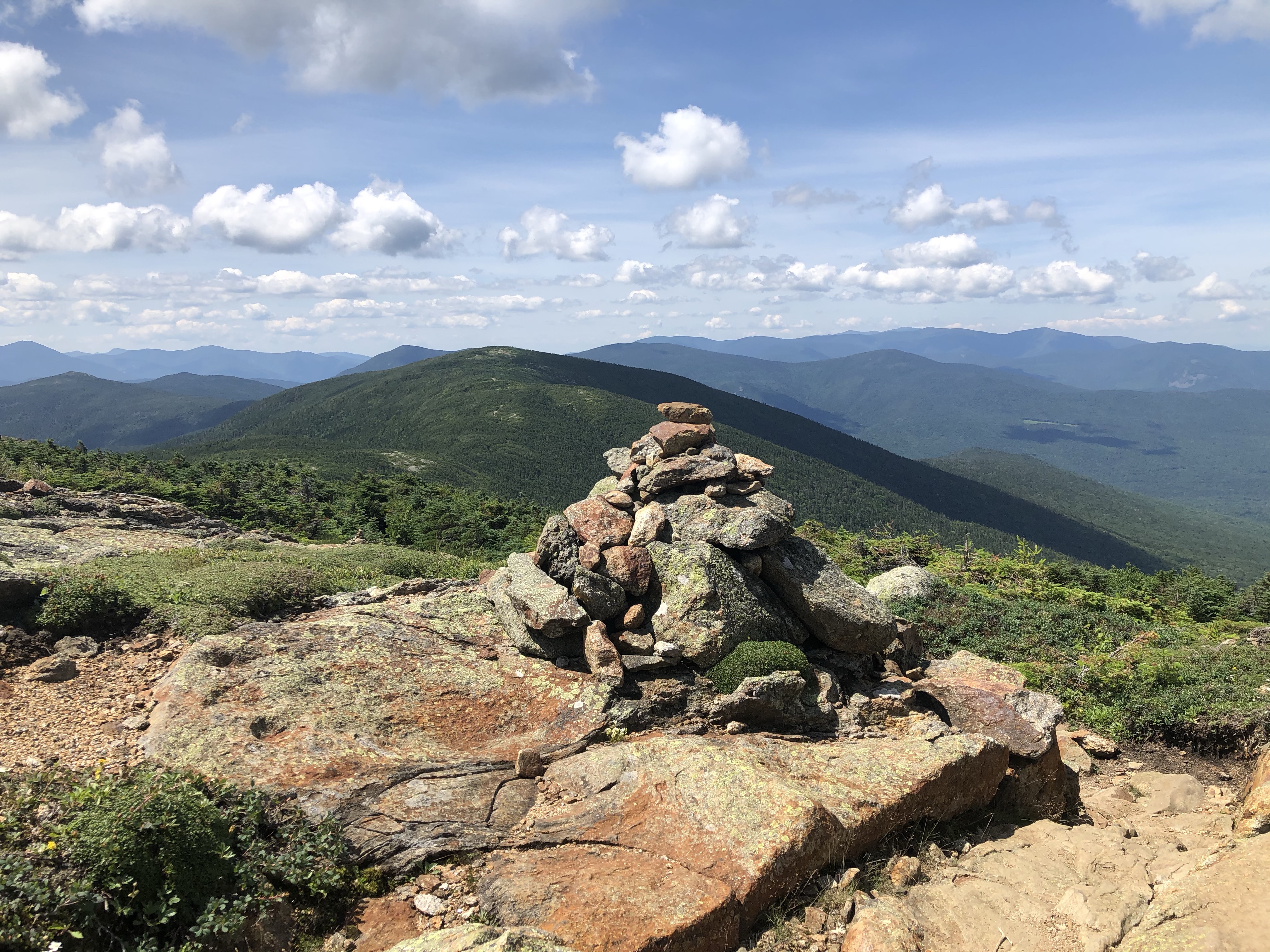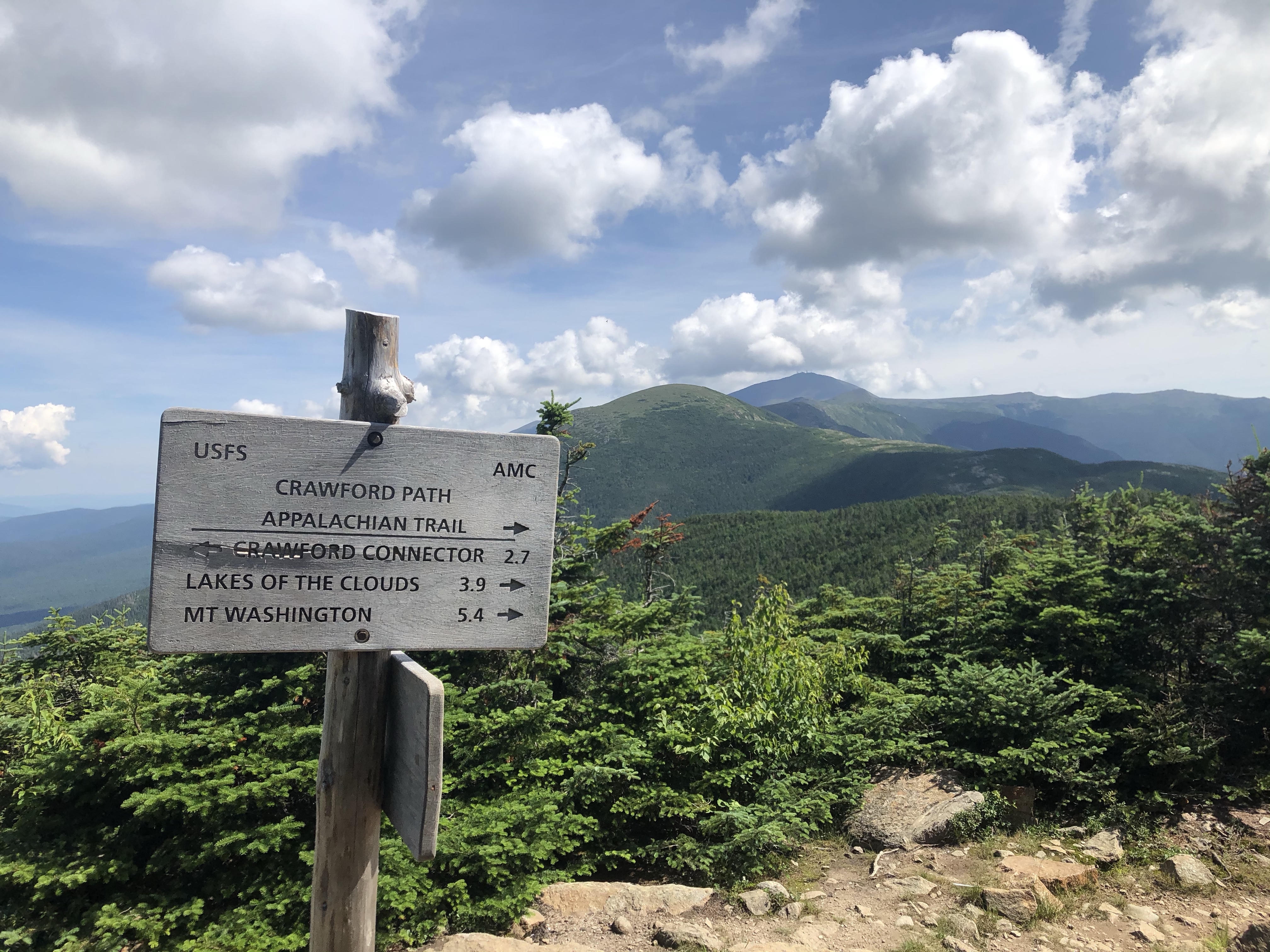 The first half of the hike from the trailhead is very easy, with a gradual incline and minimal erosion compared to what you see in other parts of the White Mountains. Unfortunately the loggers have been busy on the lower hills, clearing much of the forest away. This is what happens when the land isn’t preserved, it becomes a “land of many uses”, including logging everything except a strip of land on either side of the trail. The logging served to preview the views that we’d see later, though it was marred by the clearing.