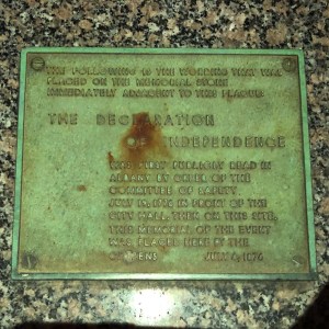 Tonight, almost 141 years since that ceremony, 241 years since the Declaration was read in this spot, and 263 years since Ben Franklin led the Albany Congress to draft the Plan of Union, I had a couple of pints across the street from the commemorative plaque and stone that marks the site.  There are many people in history whom I’d like to have met, but Ben Franklin is high on that list.  Since I can’t have a drink with him having two pints with a nod to history will have to be close enough.
