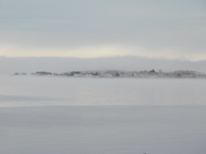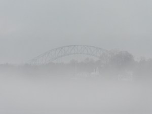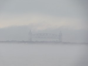 The dense fog presses up against the glass, tapping on the window lightly, wanting to come inside. Or calling me outside. I listen and layer up for a walk to the bay. I know it’s out there, if only from memory. And walk slowly to the water.