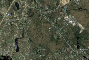 Today, instead of eating lunch like a normal person I drove over to find the sharpest point on the border between Massachusetts and New Hampshire at a spot that on a map looked to be accessible in two directions. Using Google I zoomed in on the satellite image and decided the easiest possible way to get to this point was to walk the maintenance “road” that ran under the power lines adjacent to Route 213 in Methuen, Massachusetts. This worked out well until I reached the place where I needed to head north to the border point and scanned a swampy mess overgrown with cattails and impenetrable brush. This hike turned into a dead end but a good education on the lay of the land.