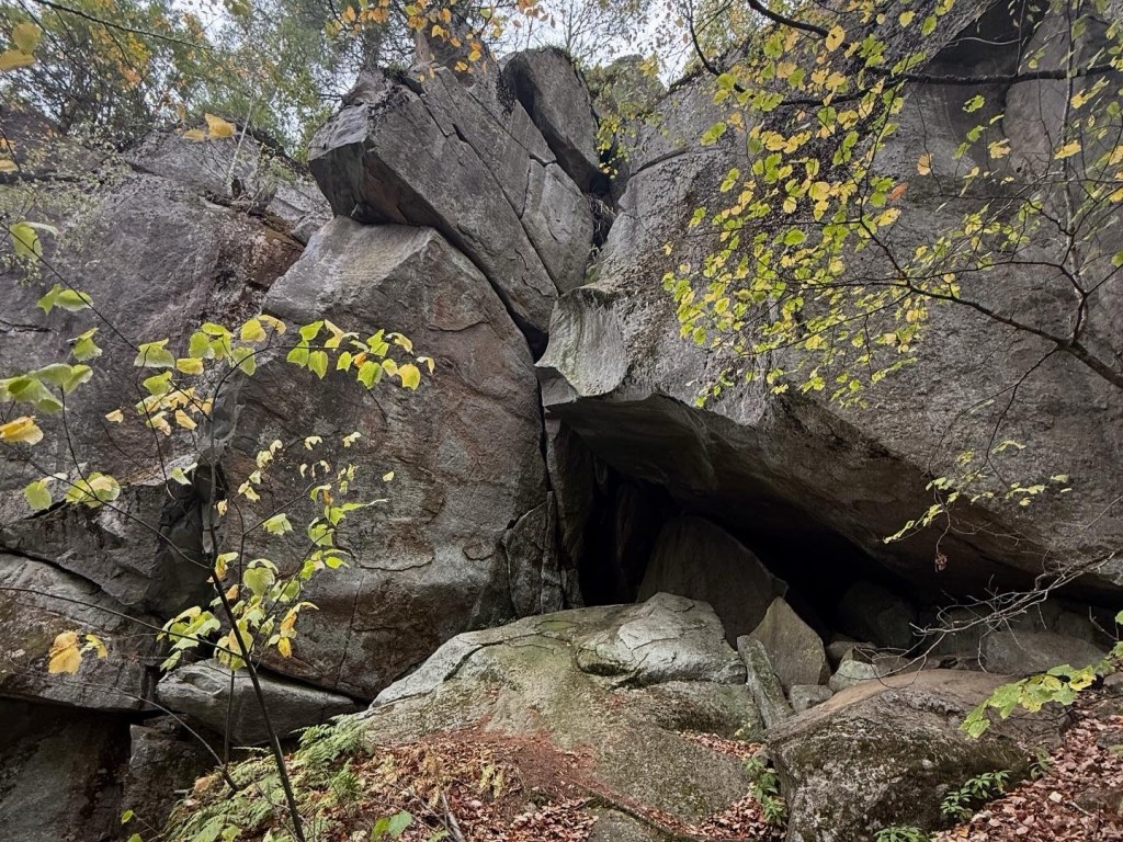 I’d hiked this place before, almost twenty years ago, focused mainly on South Mountain and the fire tower you can climb up. That’s surely the most popular trail because it’s relatively easy with a nice payoff in views when you reach the summit. But for my money, North Mountain and the ledges and boulders below it are the most dramatic and fascinating place in Pawtuckaway. If you go, you can’t miss them. Shoes are optional, of course, but highly recommended.
