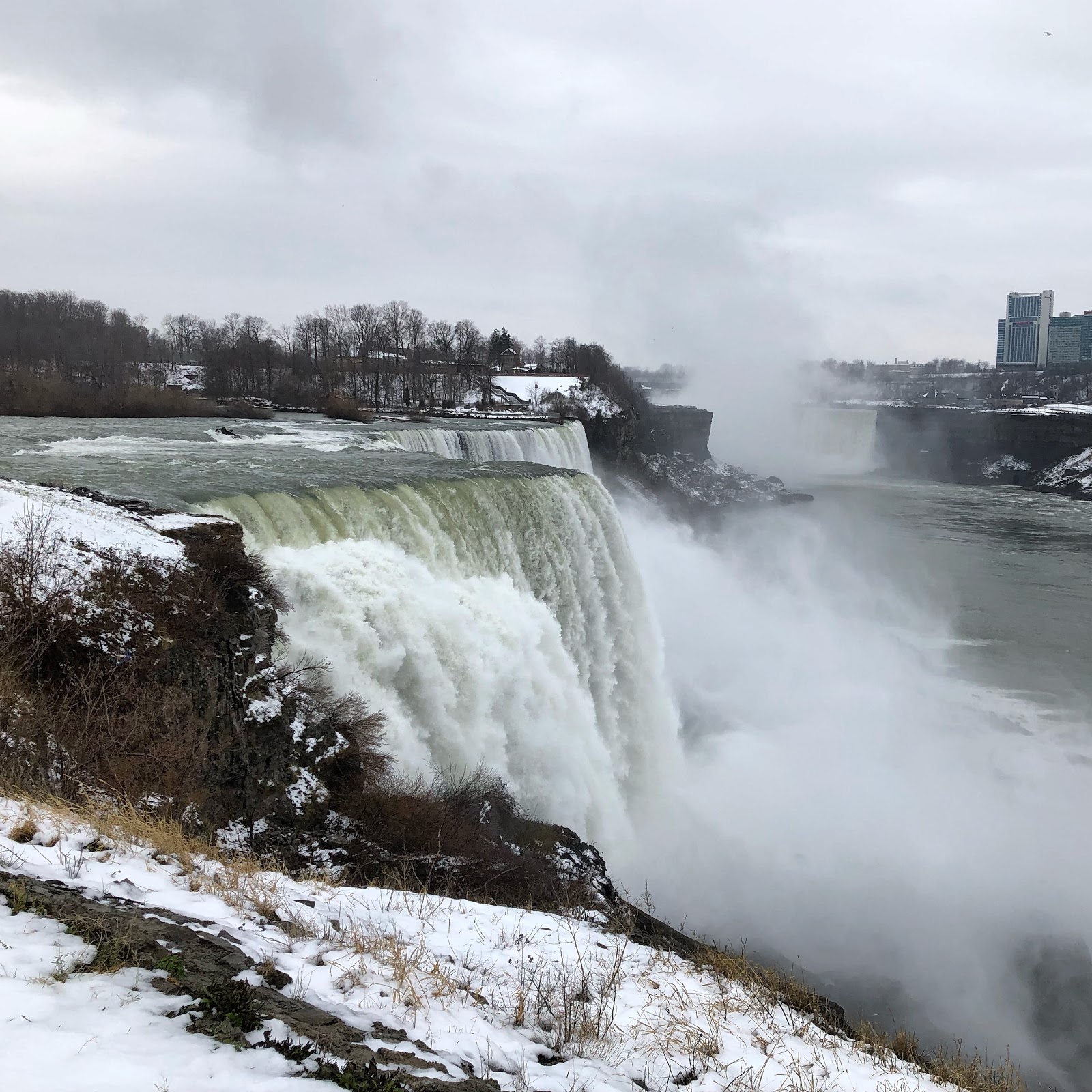 My first clue that my logic was bad was when I hit a patch of ice walking to view the falls at the American Falls viewing area. The park service did a decent job of clearing and salting the walkways, but things melt overnight and refreeze, and that’s exactly what I found with my leather soled dress black shoes. But I pressed on and had a nice photo of the falls to post on Instagram. Mission accomplished? For the responsible, reasoned and experienced traveller for sure. In this moment I omitted responsibility and reason and thought to myself, if you got this spectacular picture at Prospect Point of the American Falls, imagine how good a photo you might get over at Terrapin Point of the Horseshoe Falls?