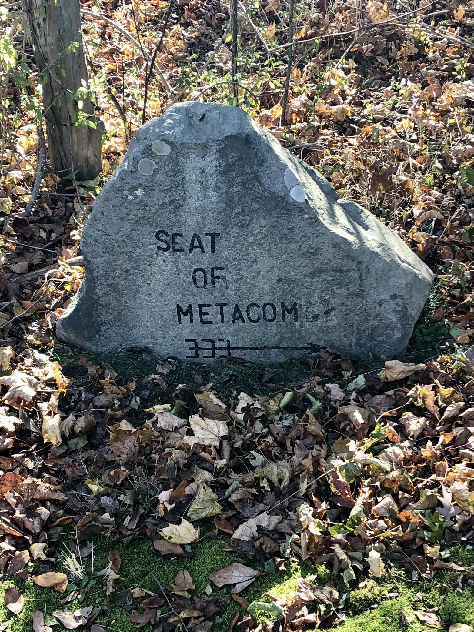 If you want to walk amongst ghosts of the past, the walk from Brown University’s Haffenreffer Museum to the rocky outcropping forever known as King Philip’s Seat offers ample opportunity to feel you are. This is where the sachem Metacom (aka Metacomet), who had once taken the English name Philip as a gesture of goodwill, waged war on the English settlers in King Philip’s War from 1675 to 1678, when Metacom was killed. Metacom was the second son of Massasoit, who was born near this spot too, as countless generations of Pokanoket were. If Massasoit is remembered for trying to manage a peaceful coexistence with the English settlers, Metacom is remembered as the first to rise up against the relentless encroachment on their lands.